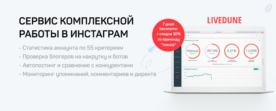 - Изучите ЦА. Чтобы удалить именно нецелевую, холодную аудиторию, у Вас должен быть четкий портрет клиента. Иначе можно лишиться в аккаунте живых людей, которые способны на целевые действия. Плюс ко всему, анализируйте вовлечённость. Её нормальный уровень 5-10% (считать тут, по промокоду «INSCALE» скидка 30% +7 дней доступа), но не факт, что проблема в ботах;