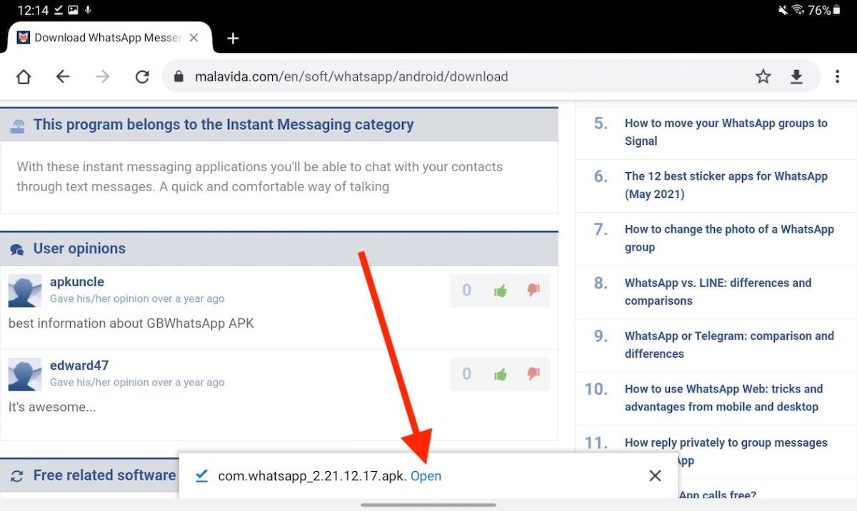 Используйте WhatsApp на своем планшете, установив APK-файл