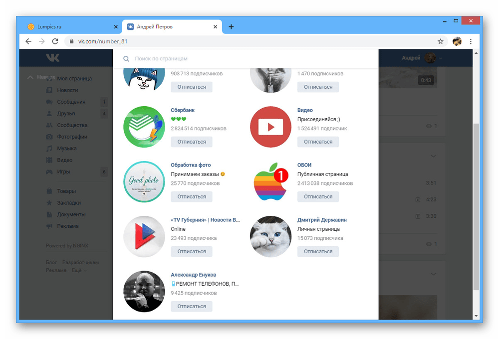 Подписка на обновления другого пользователя ВК осуществляется посредством отправки заявки в друзья и, соответственно, может быть просмотрена через одноименный раздел сайта. Кроме того, в отличие от списка входящих заявок, людей с этой страницы можно удалять с помощью отдельной кнопки.