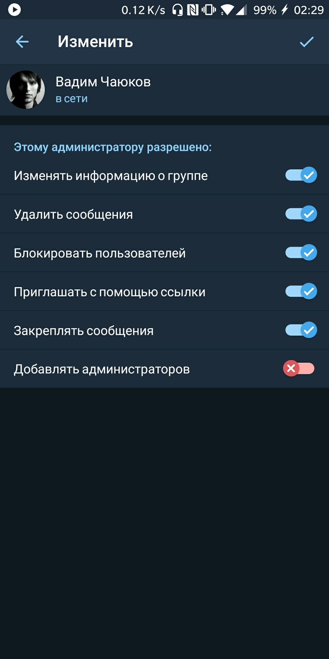 Начиная с версии 5.8 в Telegram появилась возможность передавать право собственности на групповые чаты, предоставив полные права другому администратору. Это будет полезно при смене работы, или если вы просто хотите уйти в отставку с должности создателя.