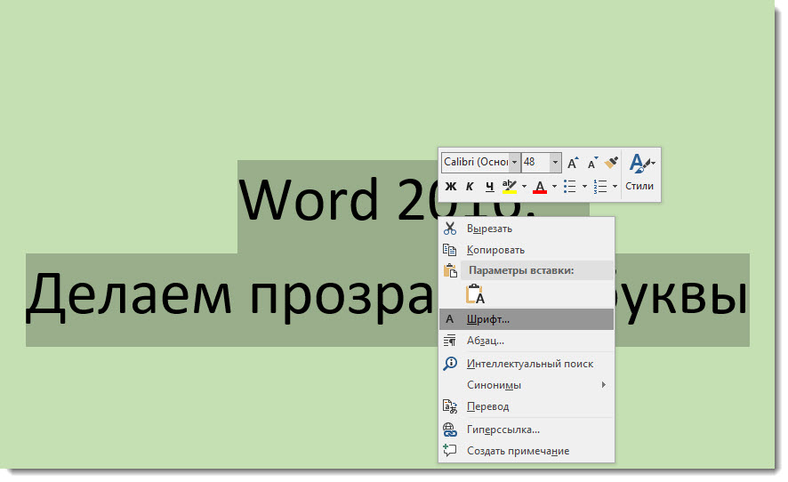 Чтобы точно научиться создавать буквы с прозрачным фоном в ворде и случайно не спутать с белой заливкой листа, изменим заранее цвет фона подложки с белого на светло-зеленый или другой по желанию. В процессе подготовки букв в дальнейшем это делать нет необходимости.