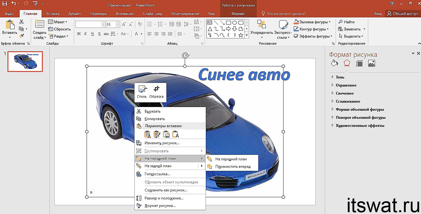 - Нажмите левой кнопкой мышки по рисунку на слайде.