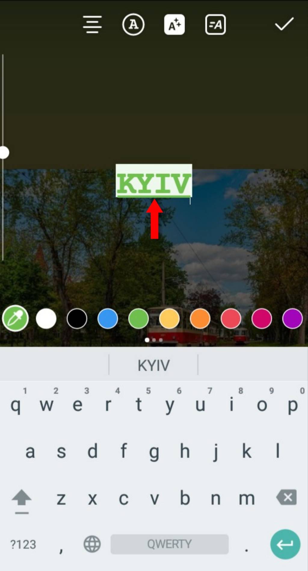 Когда надпись будет отредактирована — скопируйте её в буфер обмена, нажав на значок в левой части экрана.