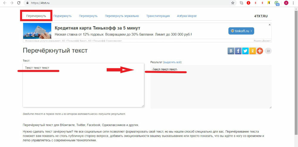 Зачеркивание ранее было недоступно в самом приложении, поэтому форматировали текст с помощью сервиса «4txt.ru». Это метод можно применять и сегодня, хотя необходимости в нем уже нет.