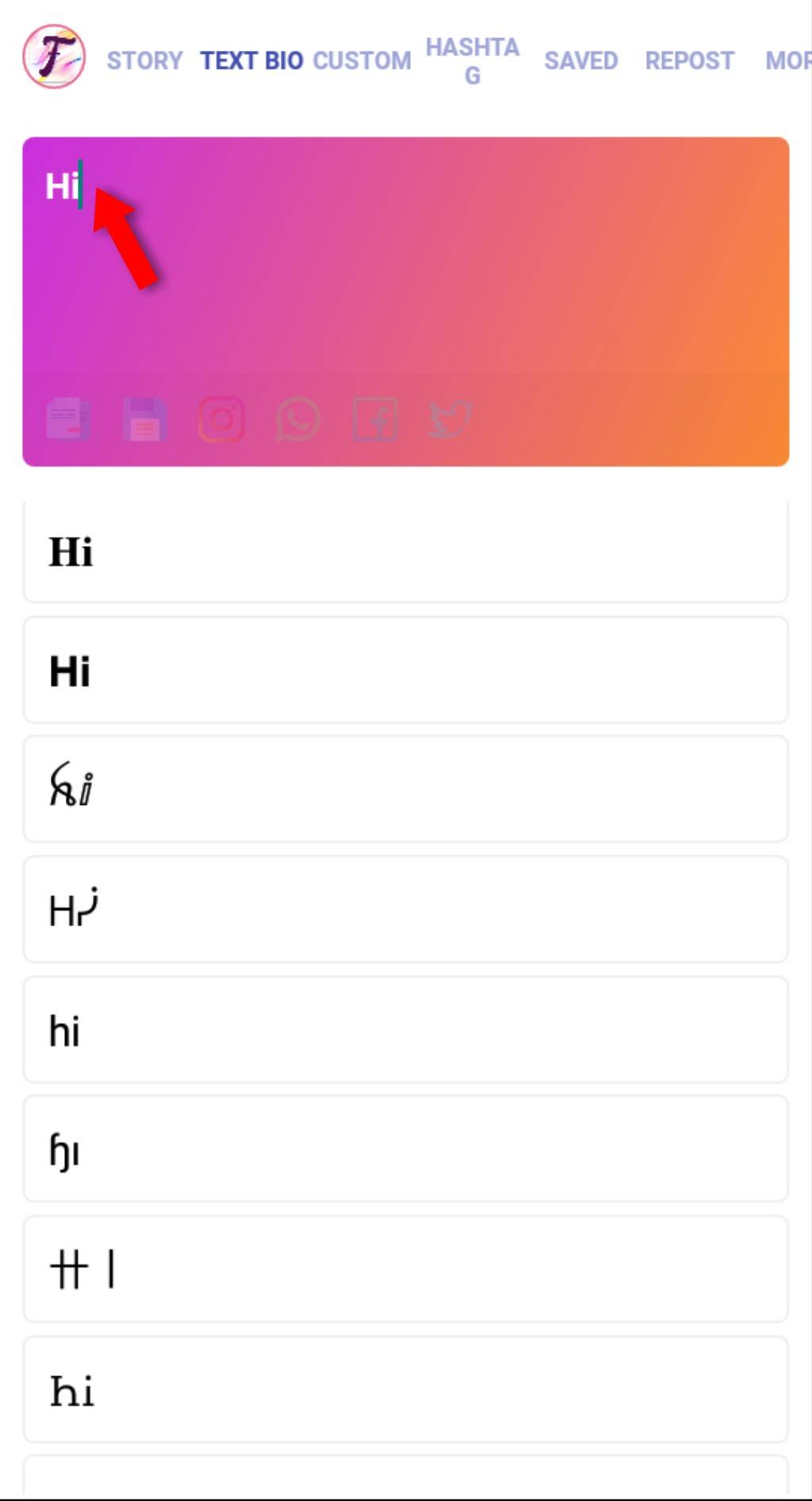 Приложение даёт возможность создания надписей в Инстаграме: