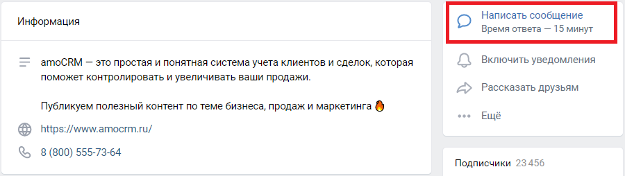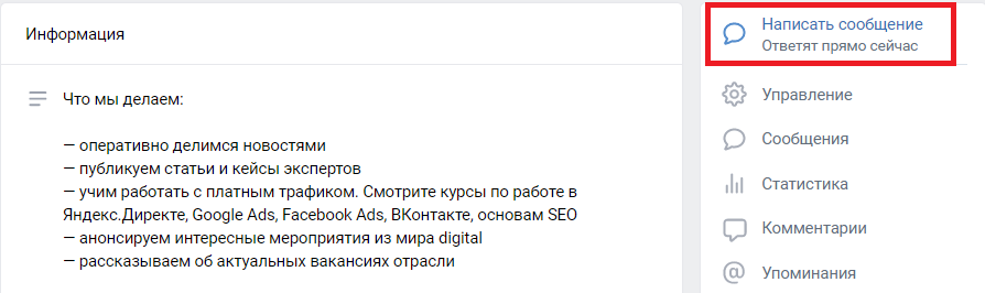 Нажмите «Сохранить». Если все сделано правильно, на странице бизнеса в правом блоке отобразится кнопка «Написать сообщение».