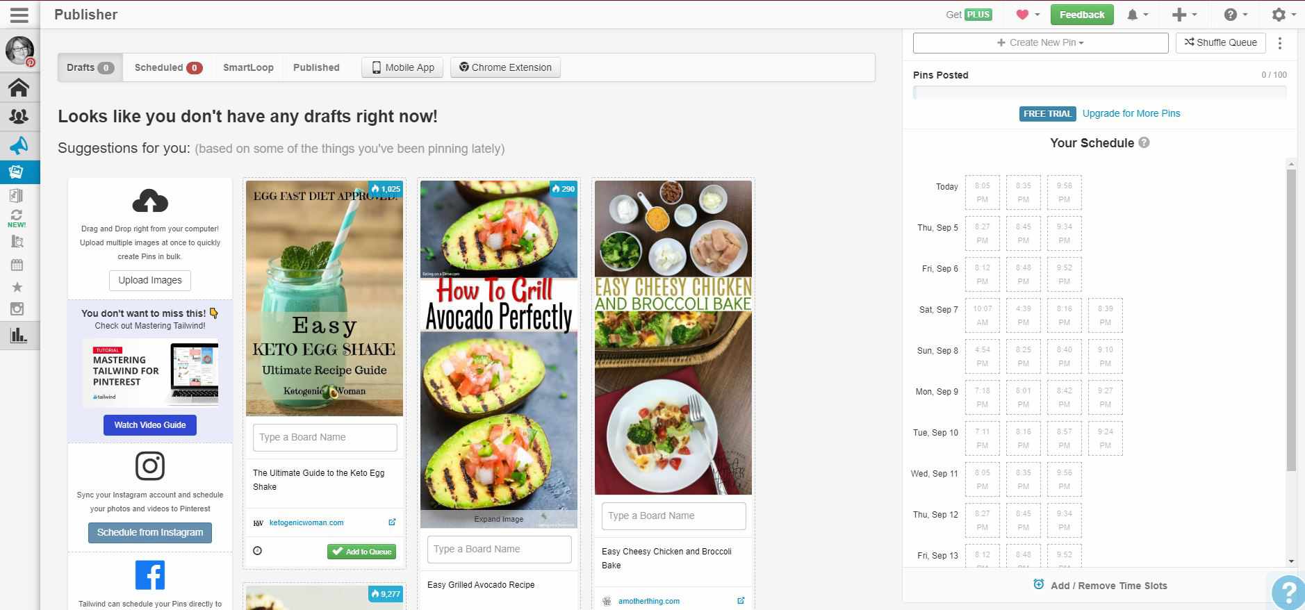 Как и Everypost, Tailwind ориентирован на визуальный социальный контент, в частности Pinterest и Instagram . В Pinterest вы можете использовать этот инструмент, чтобы планировать публикации, находить тенденции с помощью аналитики, отслеживать свой бренд, запускать конкурсы или рекламные акции и получать доступ к аналитике и отчетам.