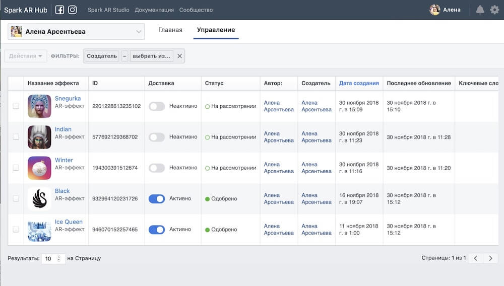 Некоторые пользователи ждут одобрения пару дней, другие – до полугода. Для проверки статуса периодически заходите в личный кабинет, так как Facebook не пришлёт вам никаких уведомлений. После получения одобрения вы увидите в Spark Ar Hub новый интерфейс для загрузки самой маски, описания и превью размером 480х480.