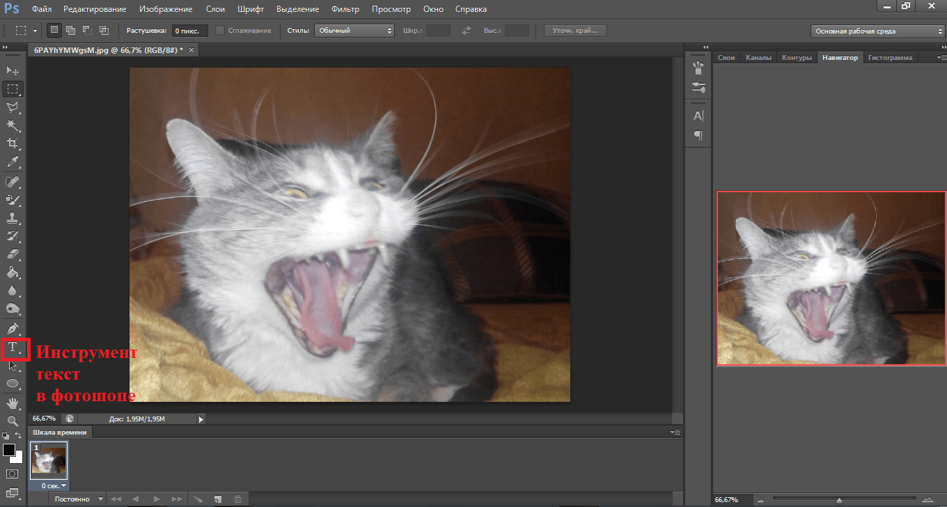 Теперь можно приступать к созданию шедевра. Выделяем произвольную область, выбираем цвет шрифта и наносим на картинку текст. Сохраняем мем и наслаждаемся творением.