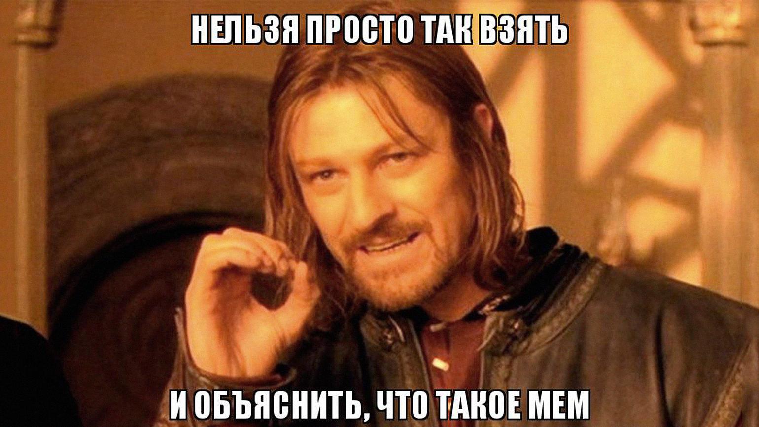 У мема обычно есть две составляющие: визуальная и текстовая. Визуальная часть не меняется, а вот текст каждый пользователь интернета может предлагать свой. На создание собственного примера у редакции Skillbox Media ушло примерно четыре секунды. В его основе известный мем «Нельзя просто так взять и…» — это фраза из фильма Питера Джексона «Властелин колец», а в качестве «подложки» используется кадр из этого же кинопроизведения.