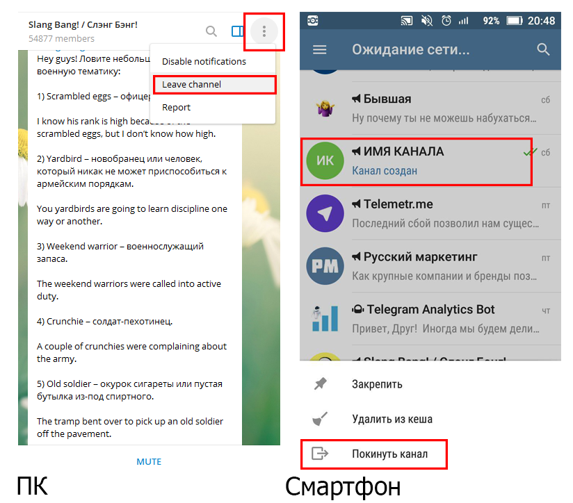 Как в telegram удалить чужой канал
