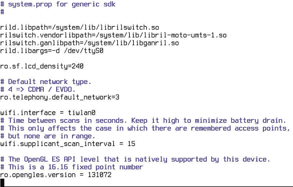 Последнее, о чем я хотел бы рассказать в статье, — это редактирование низкоуровневых настроек. В Android для этого есть файл system/build.prop, который хранит информацию о сборке прошивки и настройки для конкретных устройств. Добавив в этот файл те или иные строки, можно изменить функционирование Android, ускорить его работу или уменьшить расход батареи. Ниже приведены наиболее интересные настройки.