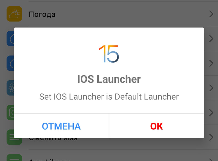 После скачивания запускаем приложение и тапаем по пункту меню «Make Default Launcher». смартфон покажет окно с выбором оболочки по умолчанию, в котором следует выбрать наш новый лаунчер в стиле айфона.