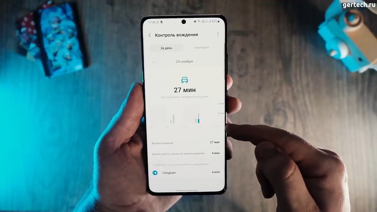 В использовании устройства можно включить контроль вождения. Здесь будет собираться статистика использования смартфона во время вождения, когда телефон подключен к автомобилю по Bluetooth.
