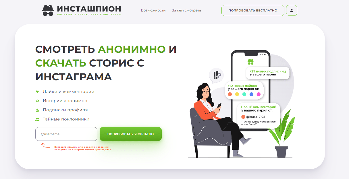 Этот сервис не только предоставляет возможность смотреть сторис анонимно, но и оповещает о новой активности интересующего пользователя. Лайки, комментарии, новые и старые истории, подписки и отписки — все это можно наблюдать даже без подписки на человека. Удаленные посты и комментарии будут сохранены и доступны для просмотра в любое время. И регистрация или вход в Инстаграм не требуются.
