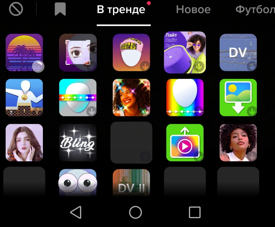 Так, автор клипов может столкнуться с проблемой, когда одного или двух эффектов больше нет в списке. Но их можно отыскать, если они были применены в каком-либо из видео. Тогда маска сохраняется в «Избранные» и открыта в «быстром доступе».