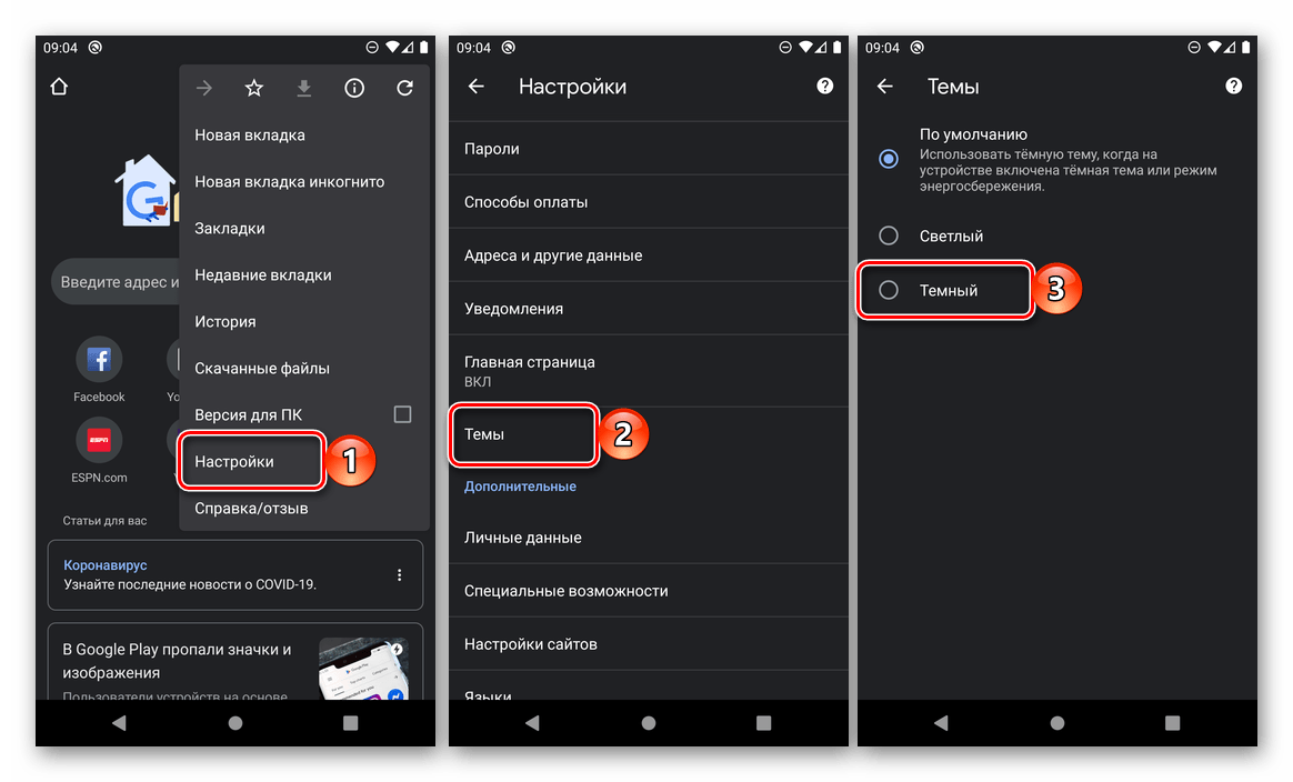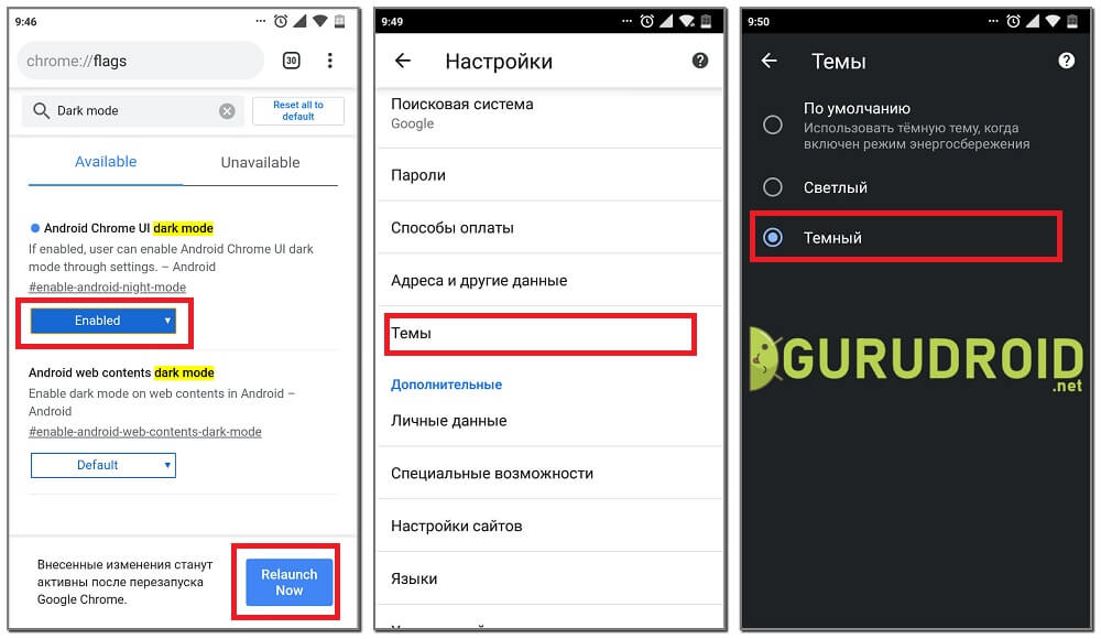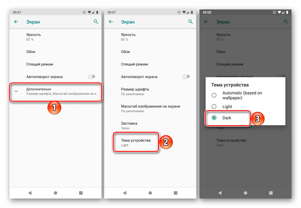 Активация темной темы на смартфоне с Android