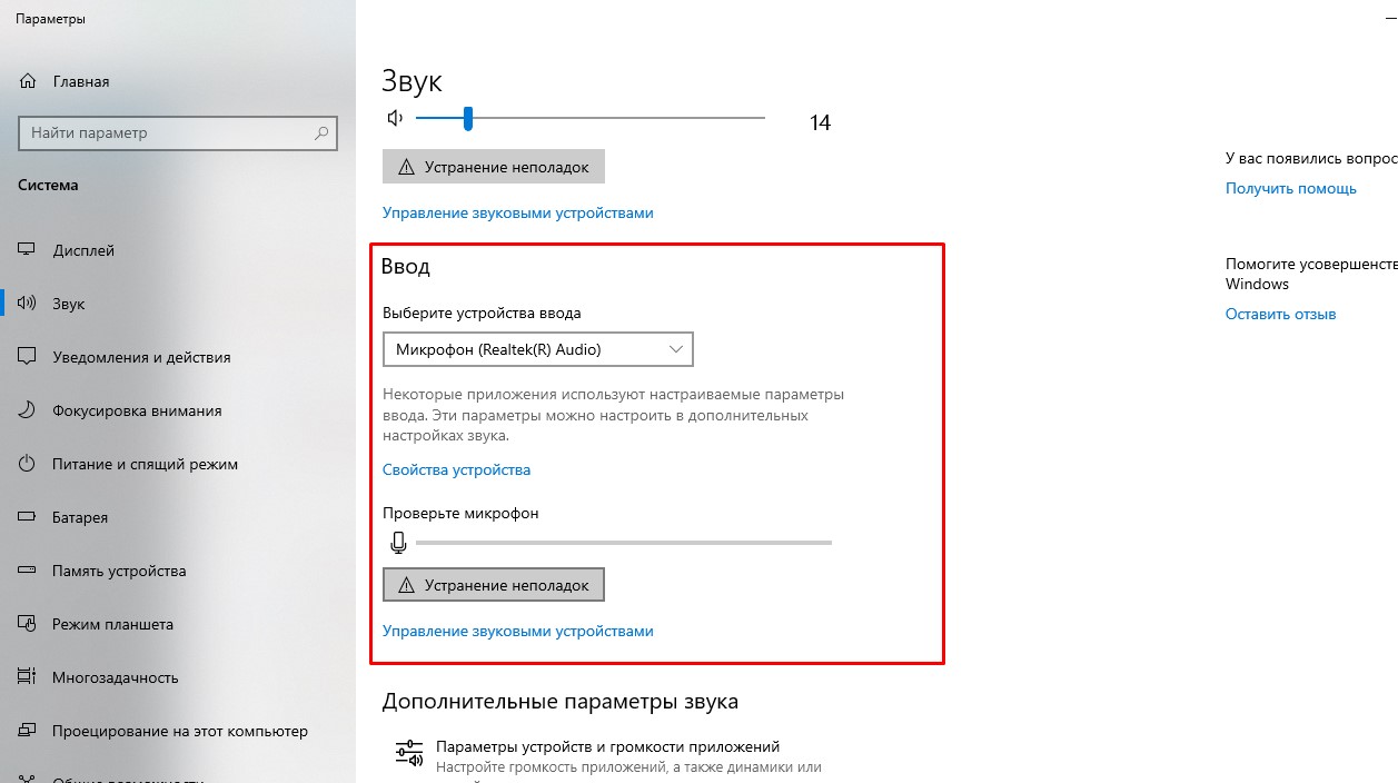 - настройки в меню «Звук» (во вкладке «Запись» должен быть включен нужный микрофон);
