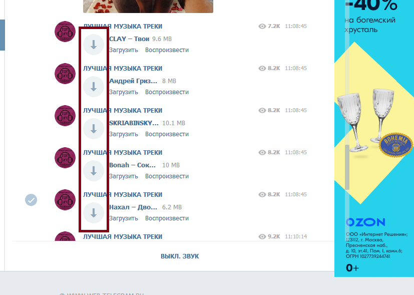 Для скачивания музыки на ПК, вам понадобится расширение или плагин. Найдите наиболее подходящее для вас приложение. После его установки в браузер, вы сможете скачивать песни с любых сайтов. Рядом с файлами появится кнопка загрузки. И для сохранения на комп нужно будет только нажать на нее.
