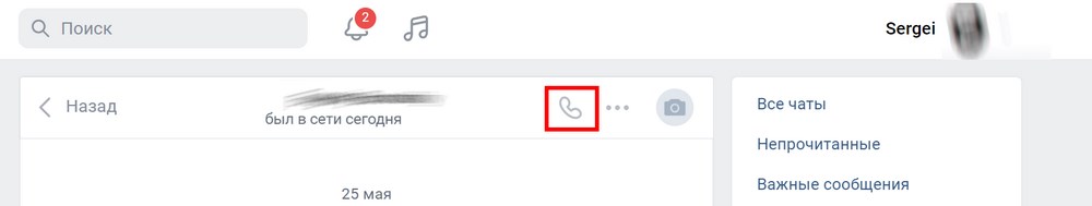 Нажимаем аватар пользователя в правом верхнем углу и «тапаем» по трубке: