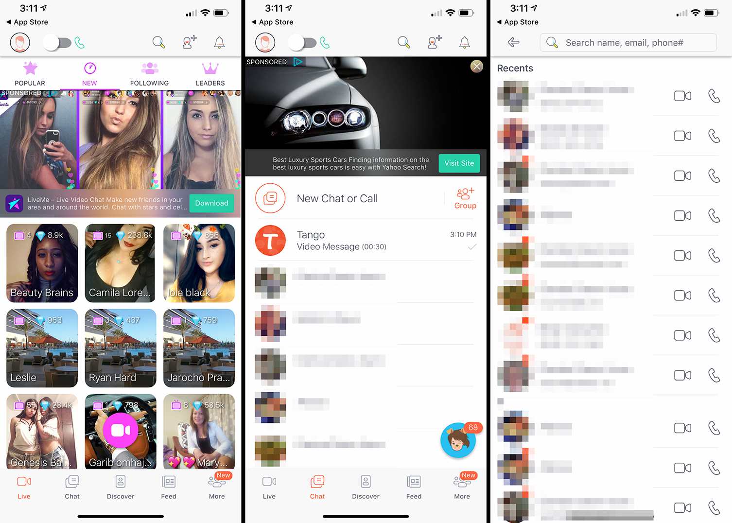 Tango может совершать видеозвонки и отправлять бесплатные текстовые сообщения другим пользователям.