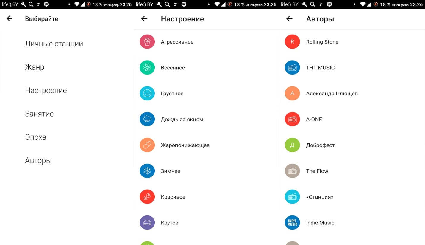 То есть именно та, которую пользователь слушал чаще всего. А вообще приложение имеет удобное деление на категории по жанрам, настроению, эпохам, стилям, настроению и так далее. Программа полностью на русском языке.