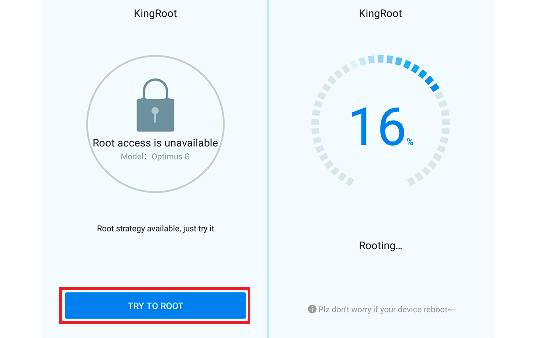- если все хорошо, станет доступной кнопка «Try to root», нажмите на нее;