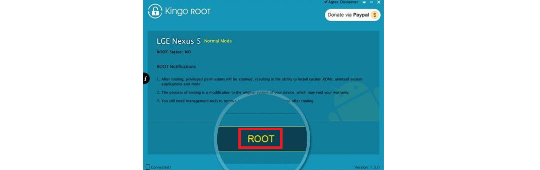 - Теперь в программе на компьютере нажмите кнопку «ROOT», чтобы дать подключенному устройству рут права.