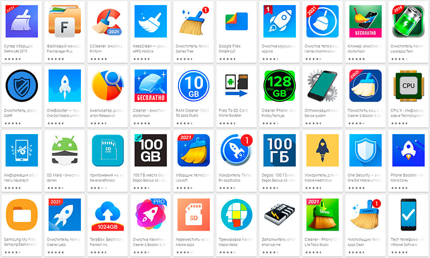 Самым простым и безопасным вариантом поиска и загрузки подходящих приложений станет посещение Google Play с последующим скачиванием одной из рекомендуемых нами программ (их перечень представим ниже). Этот сервис предлагает скачать приложения для очистки Android в широком ассортименте. Выбор обширный, хотя в плане функционала программы очень похожи. Отличия лишь в особенностях интерфейса, эффективности очистки и нюансах функционирования софта.