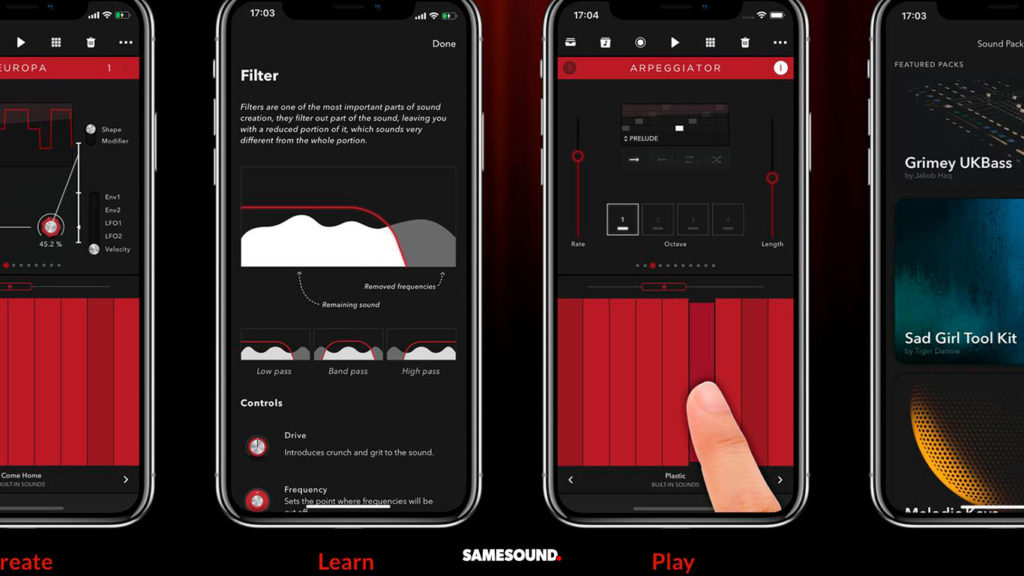 Мобильный синтезатор поставляется с 35 пресетами, и позволяет создавать патчи с использованием 16 типов звуковой волны. Для тонкой настройки звучания в приложении предусмотрена секция управления Shape, а также набор эффектов.