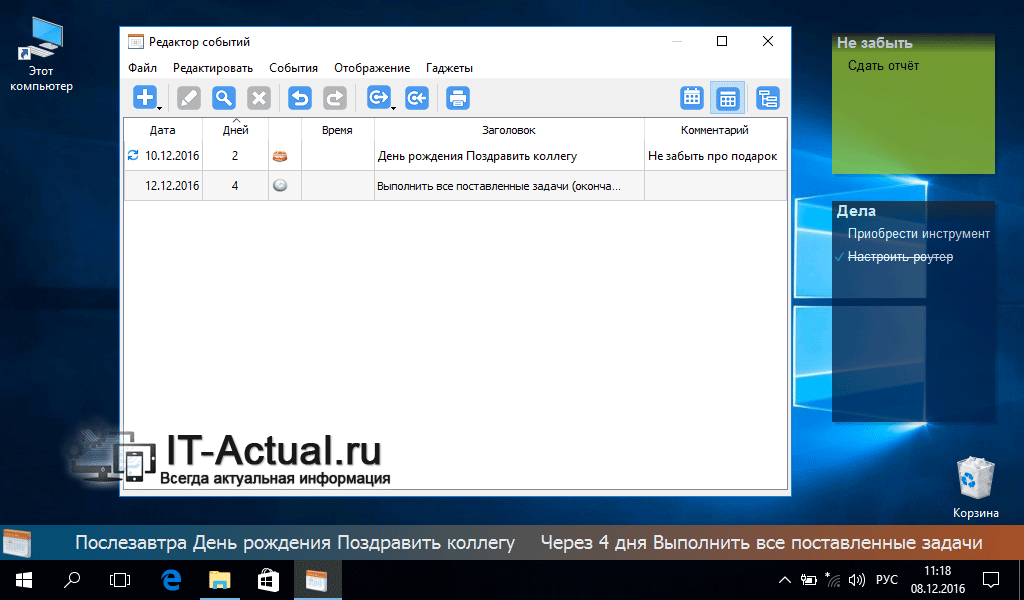 - Настраиваемая дата и время предстоящего мероприятия в напоминалке для Windowws;