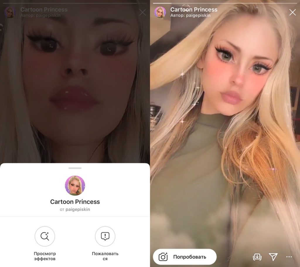 Чтобы попробовать это сделать сейчас для записи новой сторис, нажмите на первый пункт в меню «Попробуйте». Фронтальная камера откроется, и вы сможете узнать, какой вы персонаж Диснея и поделиться им в своей Инстаграм истории.