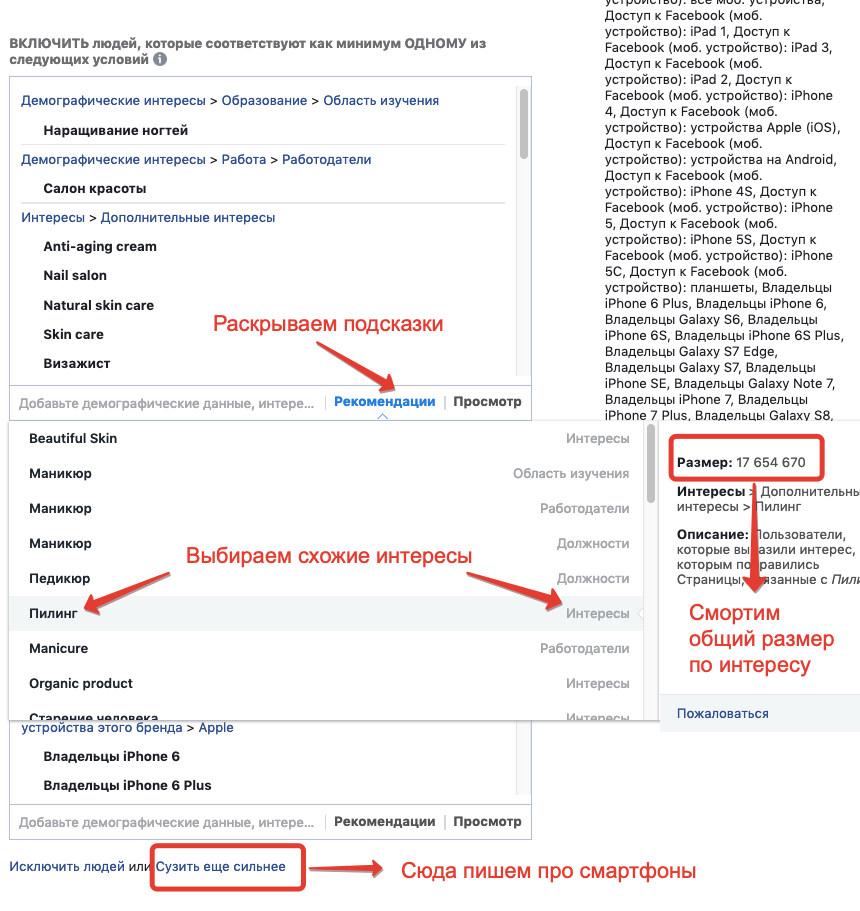 Обратите внимание, что интересы вида «Маникюр — Должности», «Маникюр — Работодатели» нам не подходят, так как это не целевая аудитория, так же как и «iPhone — Интересы». Вуаля! Наш сегмент готов