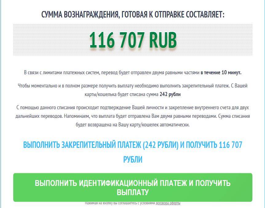 - теряете деньги, переводя их для получения обещанного крупного вознаграждения;