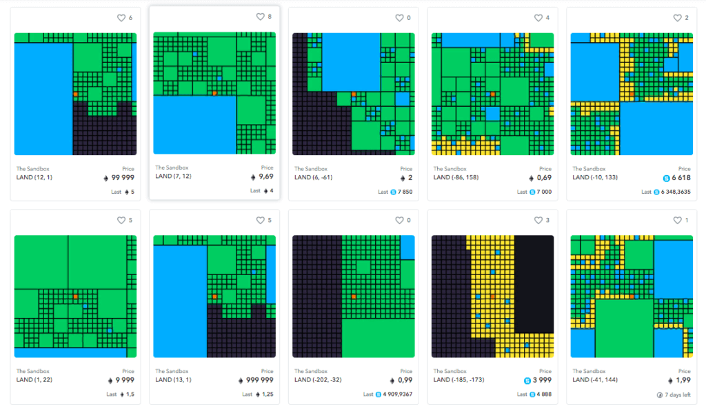 Продаваемые участки The Sandbox в OpenSea. Источник