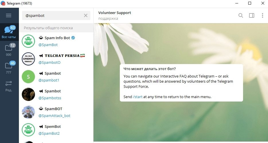 Техподдержка Telegram на русском доступна пользователям мобильной и десктопной версии! Вы можете воспользоваться специальным ботом, который даст нужные подсказки, поможет сориентироваться в меню и свяжет вас с представителями техподдержки.