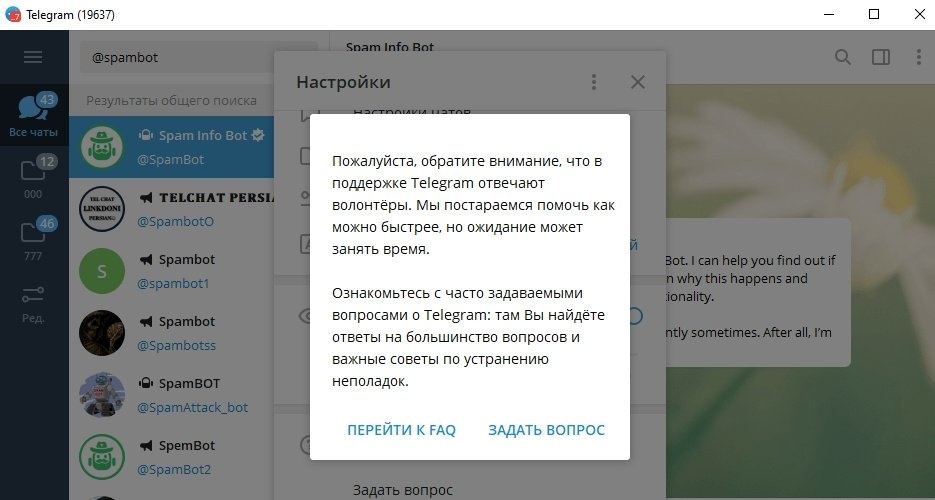 Разработчик рекомендует внимательно изучить раздел FAQ Телеграм перед обращением в техподдержку. Вы сможете узнать массу полезной информации и получите ответы на большинство вопросов, которые часто задаются пользователями.
