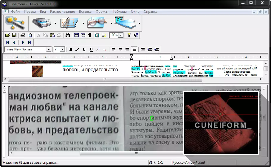 Интересно! CuneiForm распознает блоки текста, графические изображения и даже различные таблицы. Более того, считыванию поддаются даже неразлинованные таблицы.