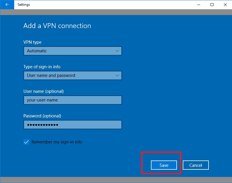 Важно создать новый профиль VPN-подключения, а не редактировать существующий. В ином случае, он не будет работать из-за ошибки в ОС Windows.