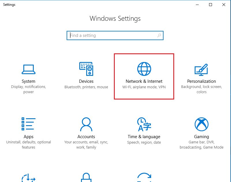 В «Настройки Windows» нажмите «Сеть и Интернет».
