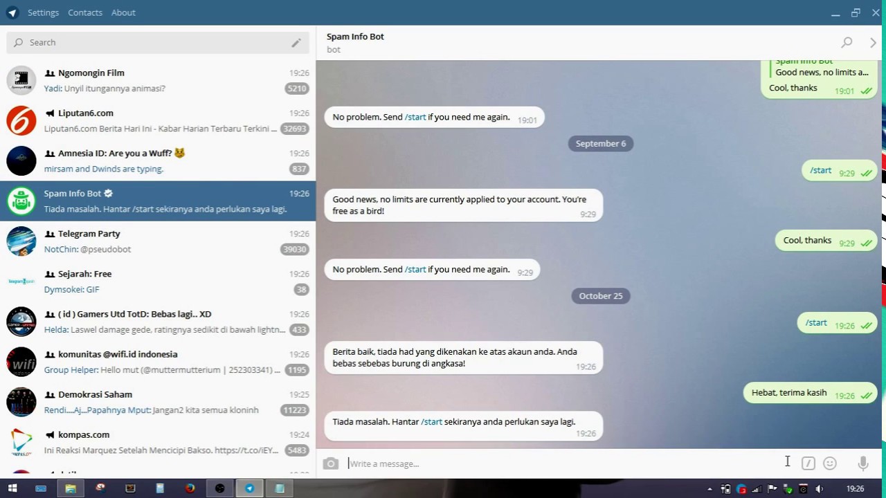 Для того чтобы узнать дату действия санкций, наложенных из-за спама, необходимо обратиться к официальному спам-боту. Данная процедура выполняется в следующей последовательности: