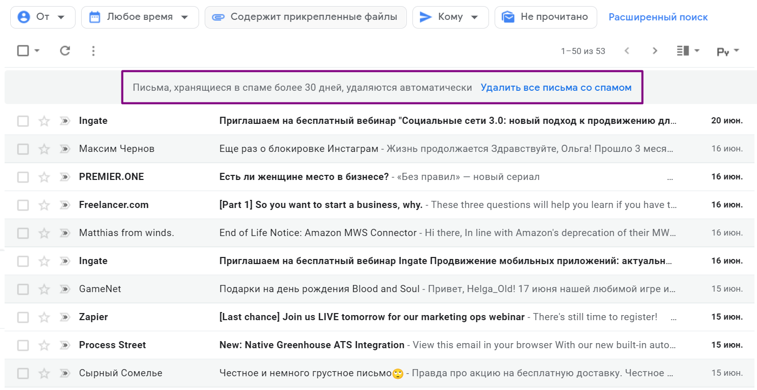Хорошие спам-фильтры экономят время. А письма из папки можно удалить одним кликом или дождаться, пока она очистится автоматически