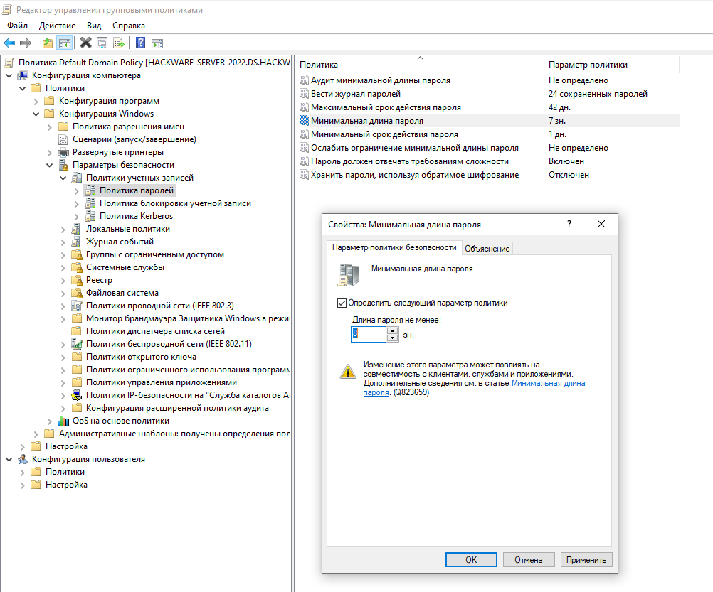 Политика паролей в политике домена по умолчанию (Default Domain Policy)
