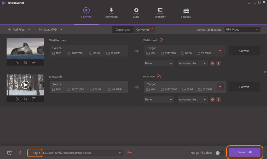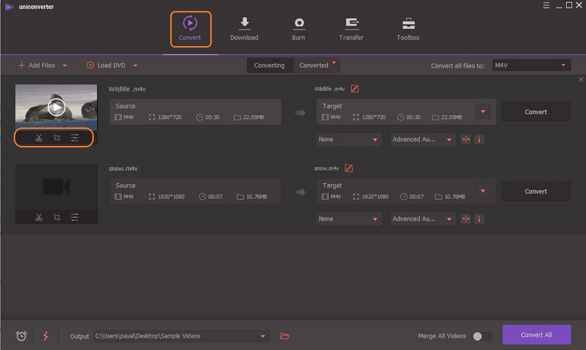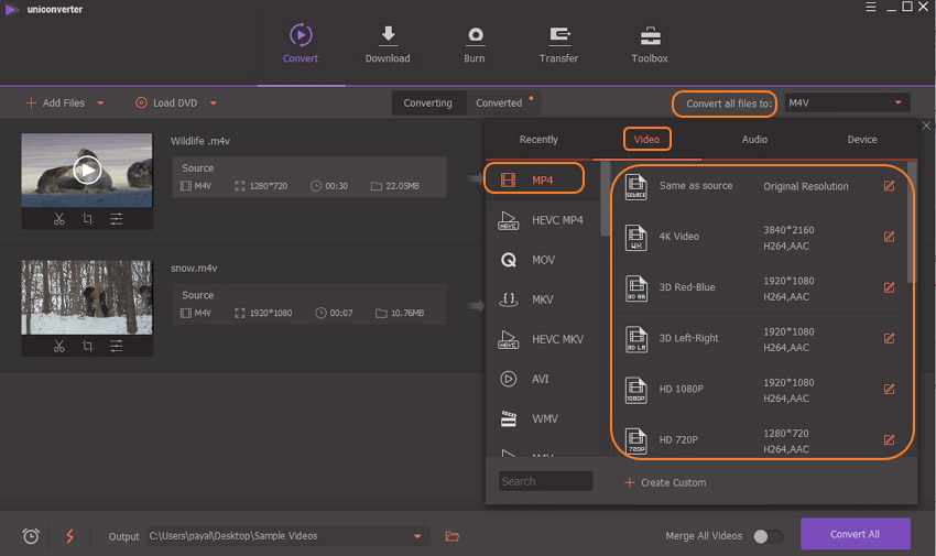 Этапы преобразования M4V в MP4 в Wondershare UniConverter: