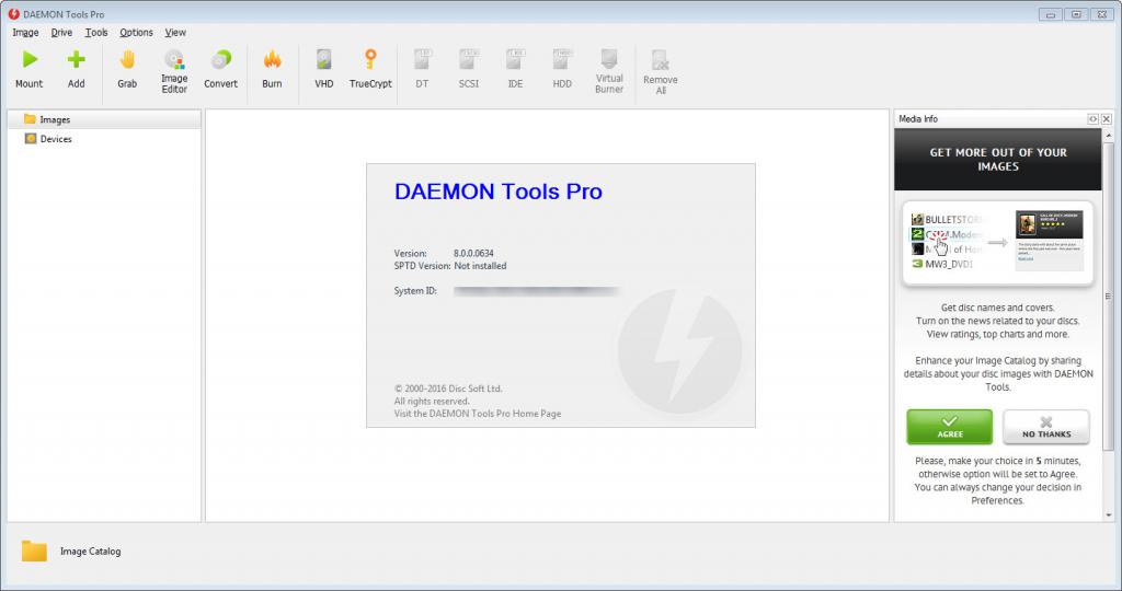 - DAEMON Tools Pro – фактически, аналог и главный конкурент «Алкоголя». Нельзя сказать, чтобы одна из этих программ была чем-то лучше или хуже. «Демон тулз» в основном используется игроманами, чтобы создавать видимость «присутствия» диска в приводе.