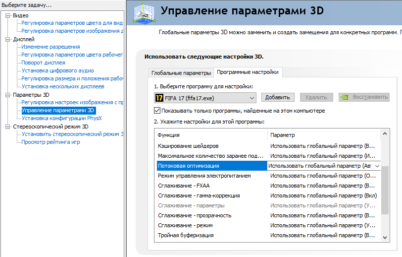 Вручную добавьте свою игру через 3D параметры NVIDIA
