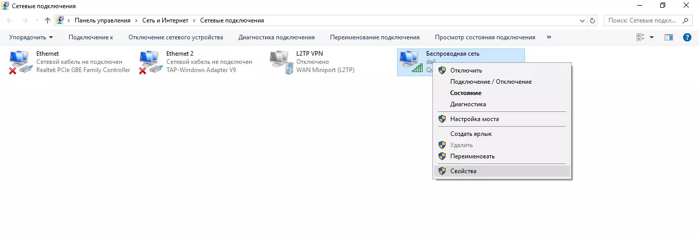 - Открыть свойства используемого адаптера.