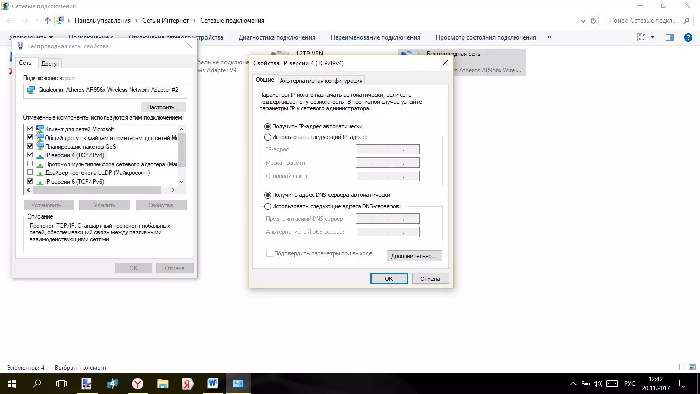 - Открыть свойства протокола TCP/IPv4.