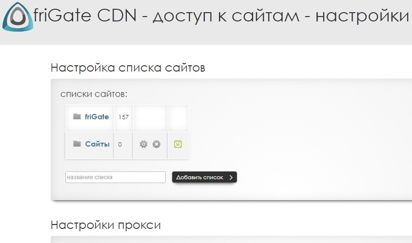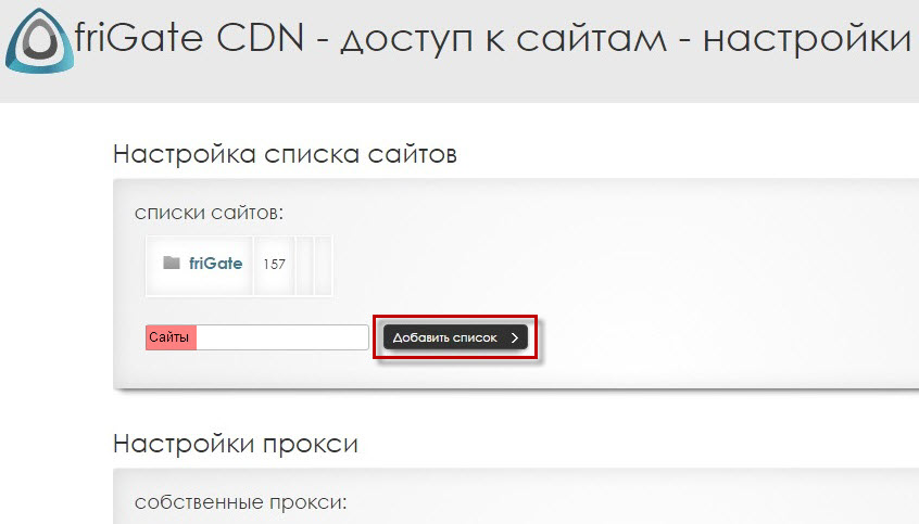 Пользовательские списки сайтов добавляются через параметры friGate