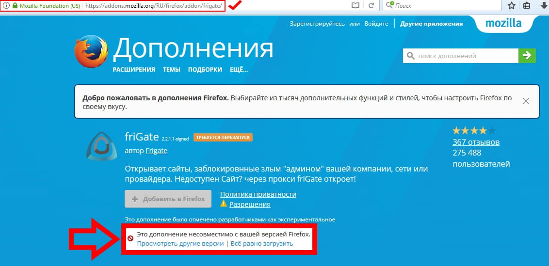 Причины, по которым не работает ФриГейт на Мозиле